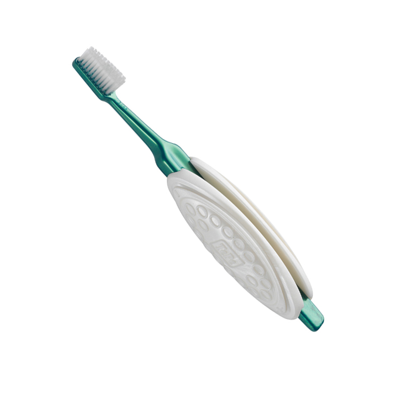 TePe Extra Grip oz. TePe Extra držalo je uporabno v primeru zmanjšanega oprijema in moči roke, ki se lahko pojavi zaradi starosti, po poškodbah rok, pri revmatoidnem artritisu in drugih sistemskih boleznih, ki slabijo moč v rokah. TePe Extra Grip je poseben nastavek, v katerega vstavimo držalo zobne ščetke in si v zgoraj naštetih primerih zagotovimo udobnejši in stabilen oprijem zobne ščetke. TePe Extra Grip je mogoče enostavno pritrditi z obeh strani glede na to, če želimo daljši ali krajši vrat ščetke. Tehta le 30 gramov in ga lahko pomivate v pomivalnem stroju.