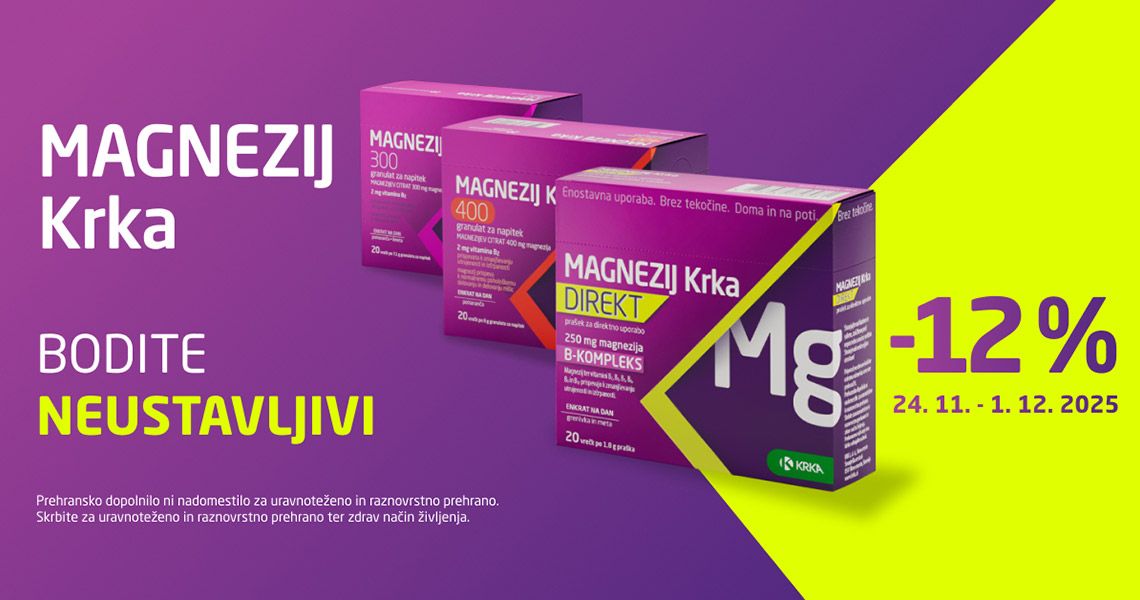 Vsi magneziji Krka so vam na voljo 12% ugodneje.