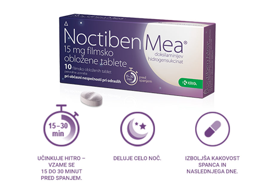 Spanec lahko izboljšamo z dobro higieno spanja, pomagamo pa si lahko tudi z zdravilom brez recepta Noctiben Mea. Njegova ključna prednost je, da deluje že po prvem odmerku, torej še isto noč, zato ga lahko vzamemo po potrebi.