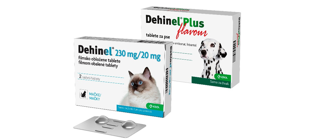 Črevesne gliste in trakulje lahko pri hišnih živalih učinkovito odpravite z izdelkoma Dehinel za mačke in Dehinel Plus Flavour za pse.