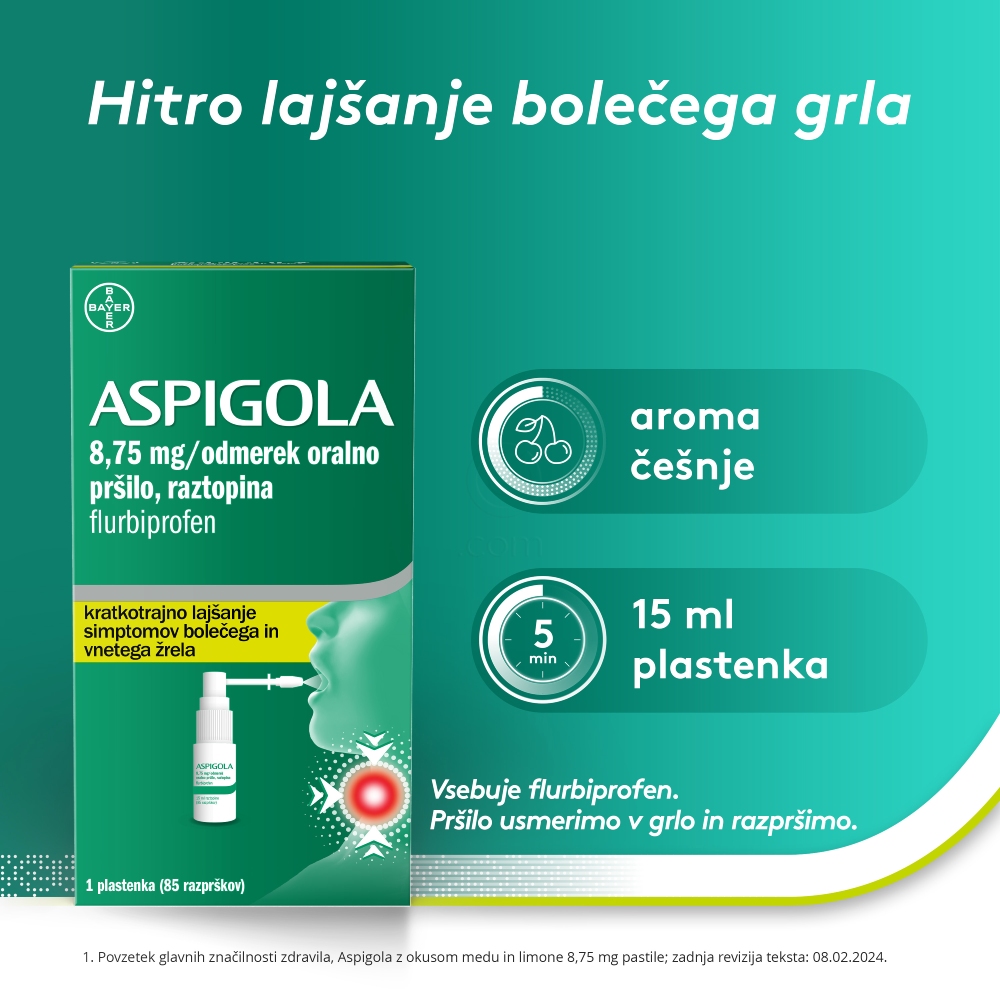 Aspigola 8,75 mg/odmerek, oralno pršilo - raztopina (15 ml)