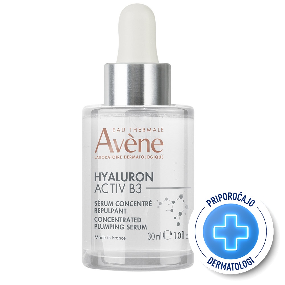 Avene Hyaluron Activ B3 koncentrirani serum ta serum vsebuje dve visoko koncentrirani sestavini, priznani v dermatologiji.