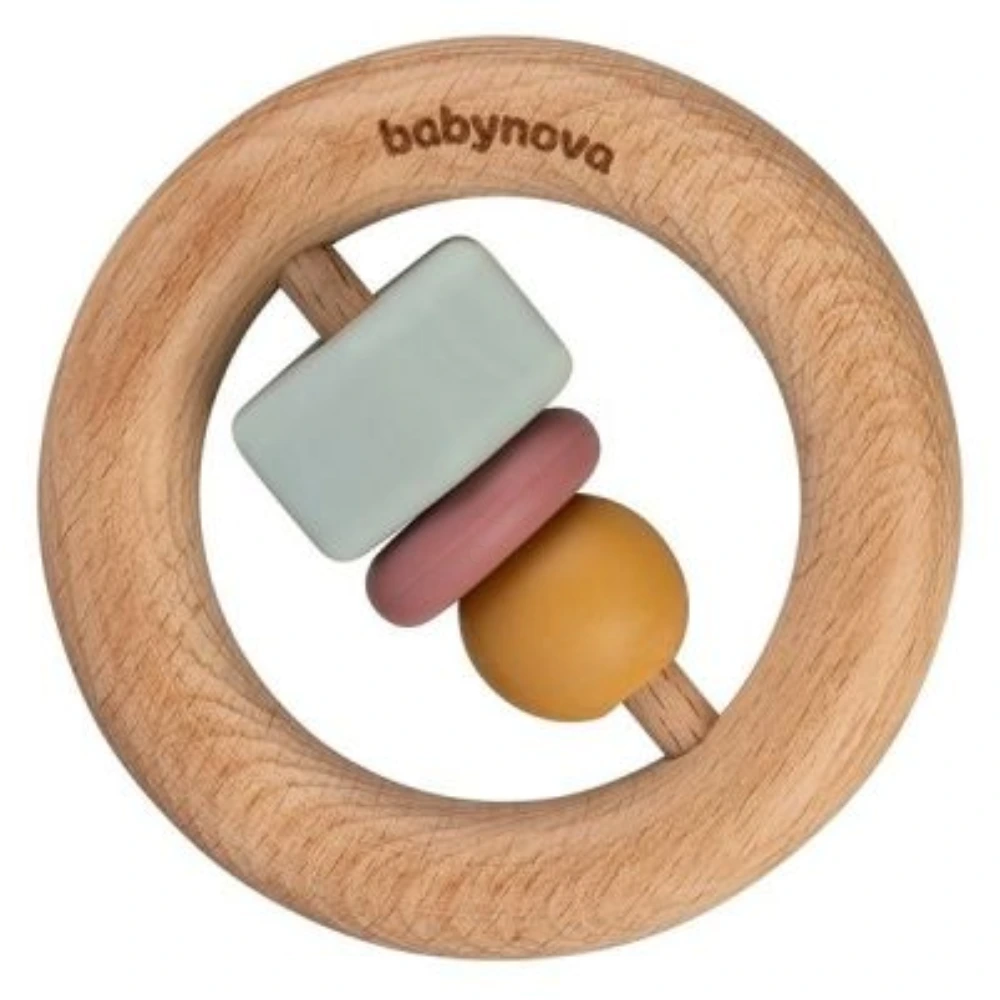 Grizalo je izdelano iz naravnega bukovega lesa in mehkega silikona in podpira razvoj senzomotoričnih sposobnosti ter lahko pomaga med rastjo zob.