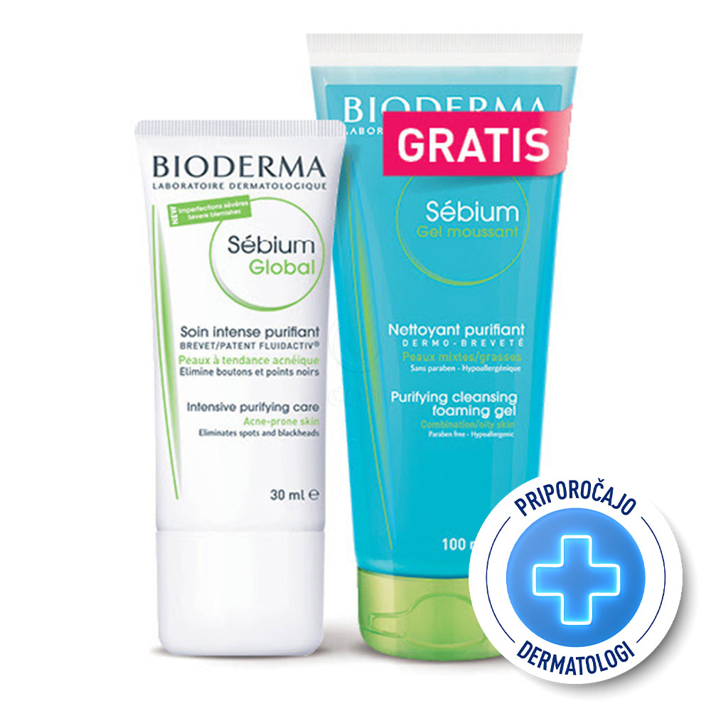 Bioderma Sebium Global, paket za kožo nagnjeno k aknam (30 ml + 100 ml)