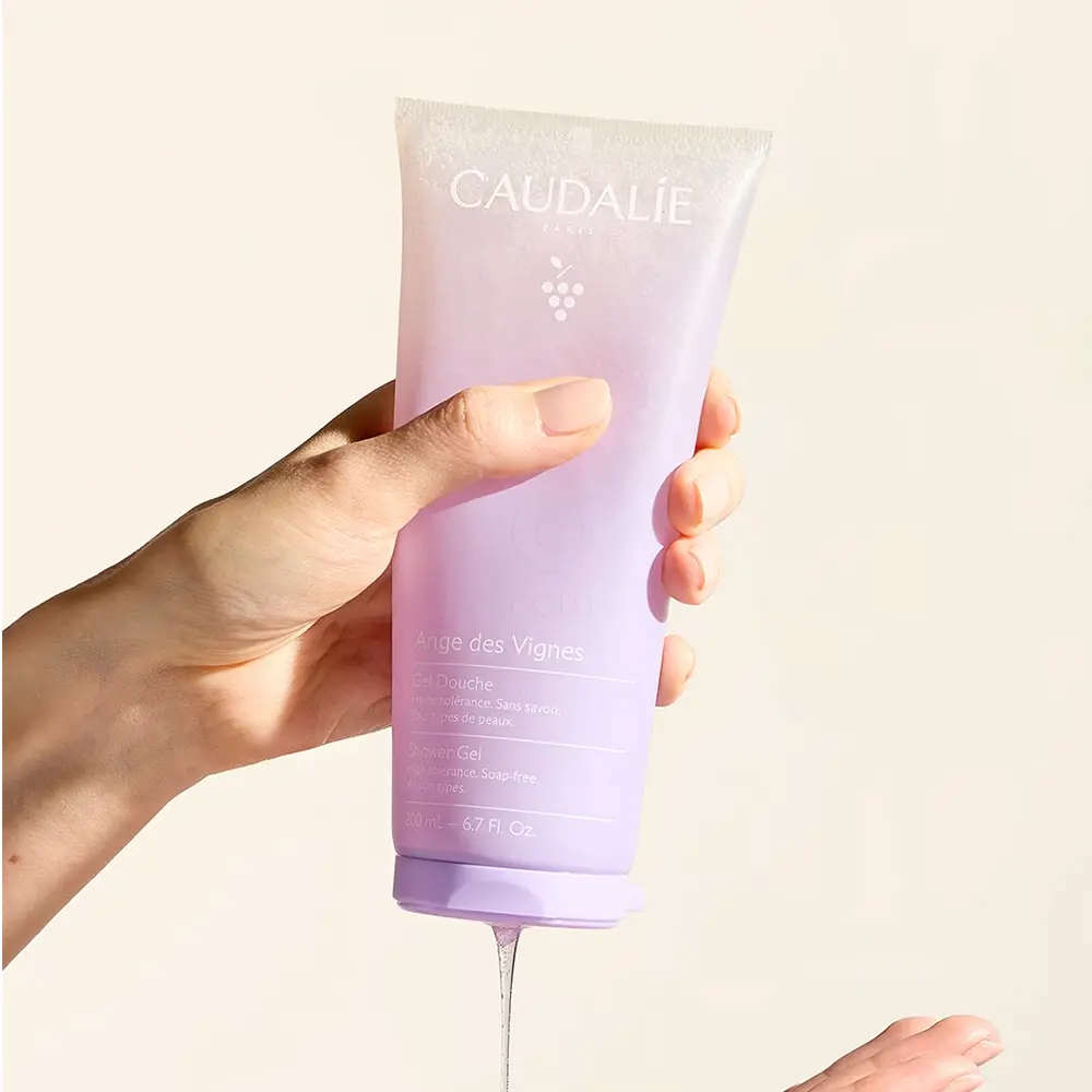 Caudalie Ange des Vignes gel za prhanje nežno čisti kožo brez izsuševanja. Formula je brez sintetičnih mil in je primerna tudi za najbolj občutljivo kožo. Koža je po uporabi rahlo odišavljena s prefinjenimi sadnimi in cvetličnimi notami malinovega grozdja, nerolija in pačulija.