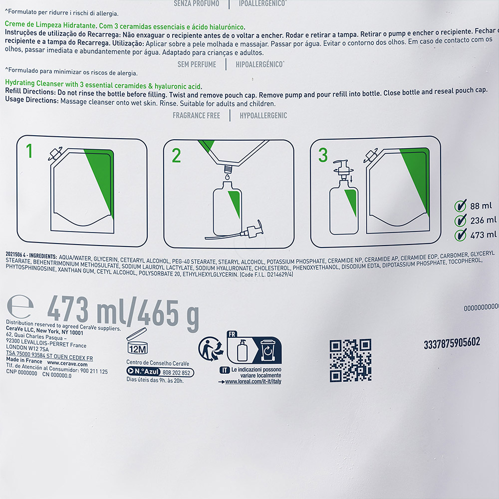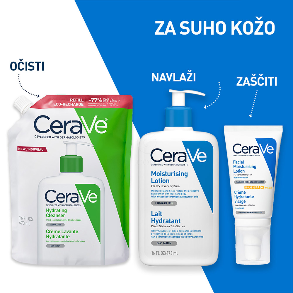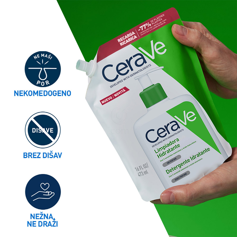 CeraVe, vlažilna čistilna emulzija za obraz za normalno do suho kožo - Refill (473 ml)