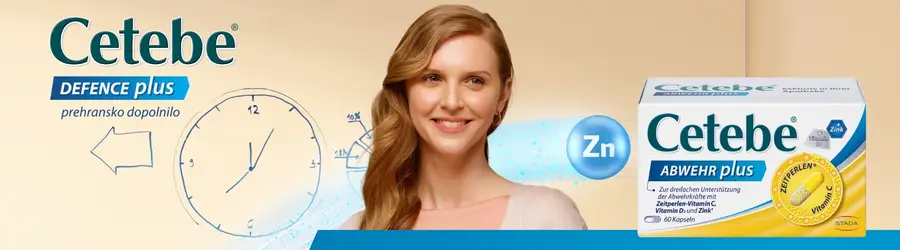 - Cink, ki ga vsebuje Cetebe DEFENCE plus, je v obliki cinkovega glukonata. Ta organska cinkova spojina se zlahka in veliko bolje absorbira v človeškem telesu kot številne druge cinkove spojine. Ker telo cink zadrži le v omejenem obsegu, je treba ta element v sledovih redno vnašati s hrano.