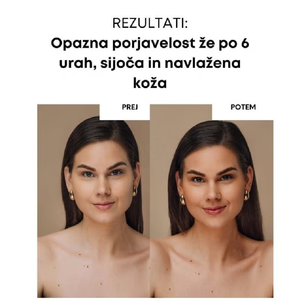 Da, serum daje naraven videz brez uporabe pudra. Zagotavlja enakomerno porjavelost in zdrav sijaj kože.