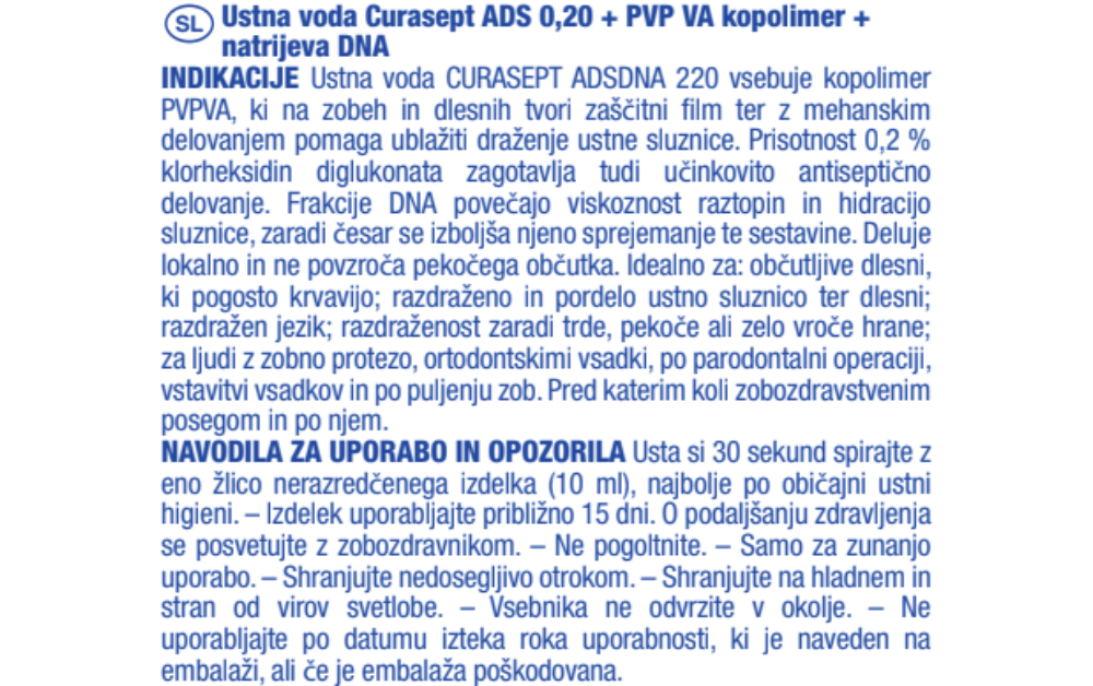 Uporaba Curasept ADS DNA 220 ustne vode: