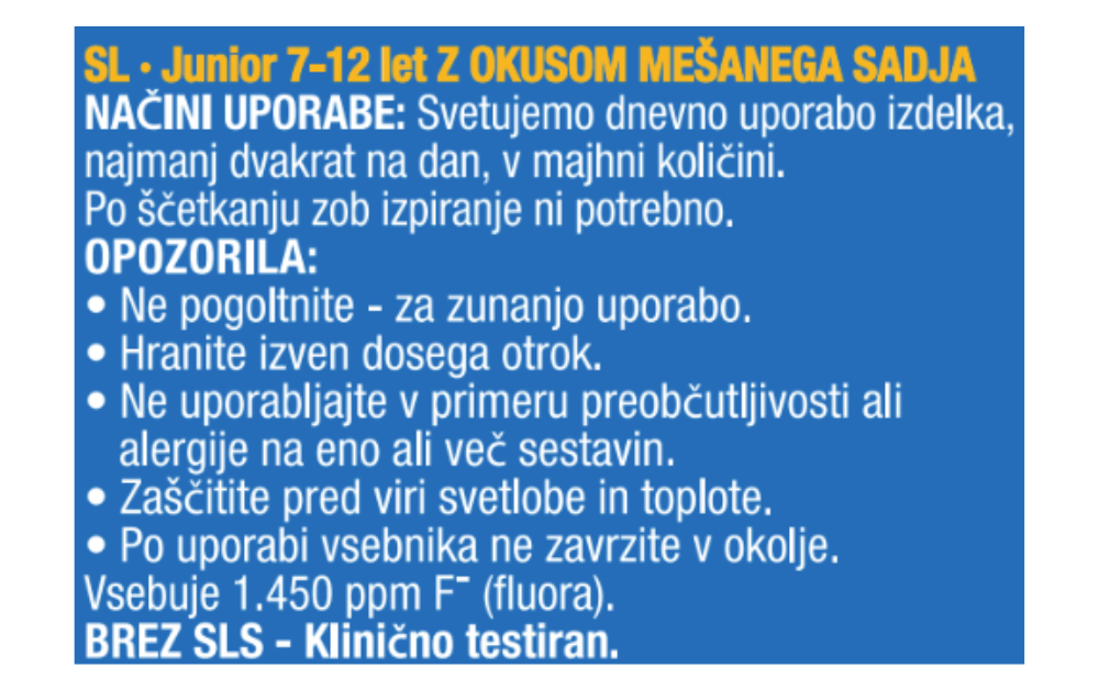 | Oblika: | zobna pasta, medicinski pripomoček |