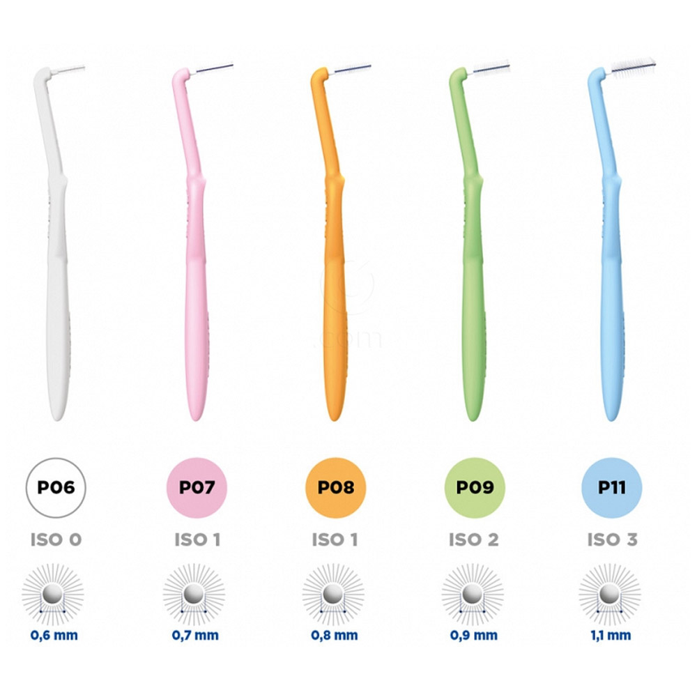 Medzobne ščetke CURAPROX PROXI PREVENTION ANGLE so na voljo v 5 različnih velikostih od ISO 0 do ISO 3, od Ø 0,6 mm do Ø 1,1 mm in so namenjene čiščenju medzobnih prostorov ob zdravi dlesni.