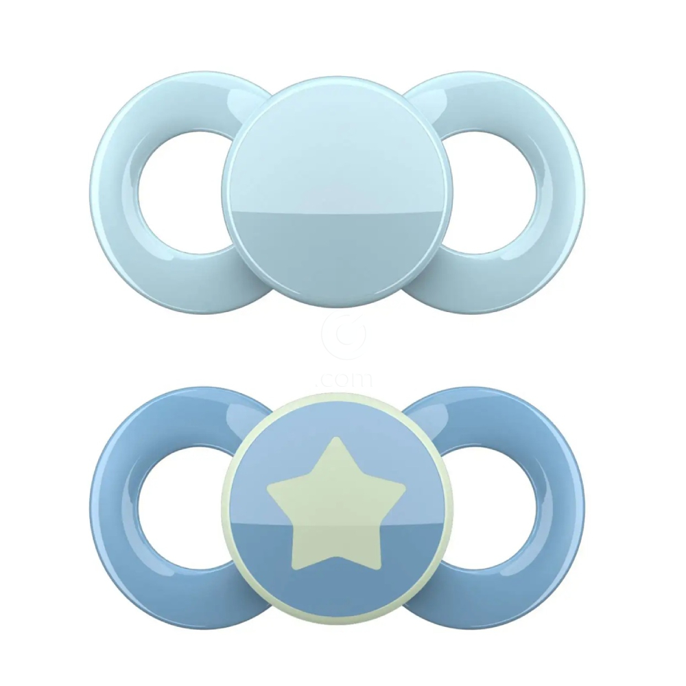 Dentistar, silikonska duda za dan in noč - velikost 0-6 m (2 dudi + higienska škatlica)