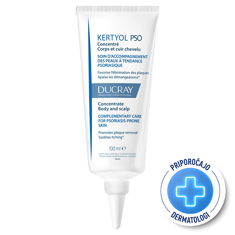 Ducray Kertyol P.S.O. koncentrat za lokalno je posebej zasnovan kot dopolnilna nega namenjena direktnemu nanosu na zadebeljene, suhe luske na telesu (komolci, kolena, goleni, itd.), kakor tudi na lasišču. Že po prvi uporabi deluje izdelek na naslednje 4 načine: Hitro izboljša izgled zadebeljenih in suhih plakov, krepi kožno pregrado, pomirja občutek srbenja in zmanjšuje pojav rdečice.
