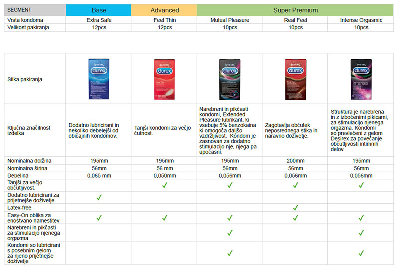 - Prosojni, lubricirani, s prostorom za semensko tekočino.