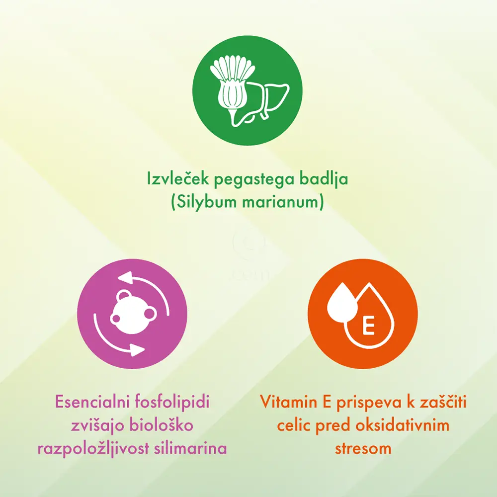 Esencialni fosfolipidi zvišajo biološko razpoložljivost silimarina do 10-krat.