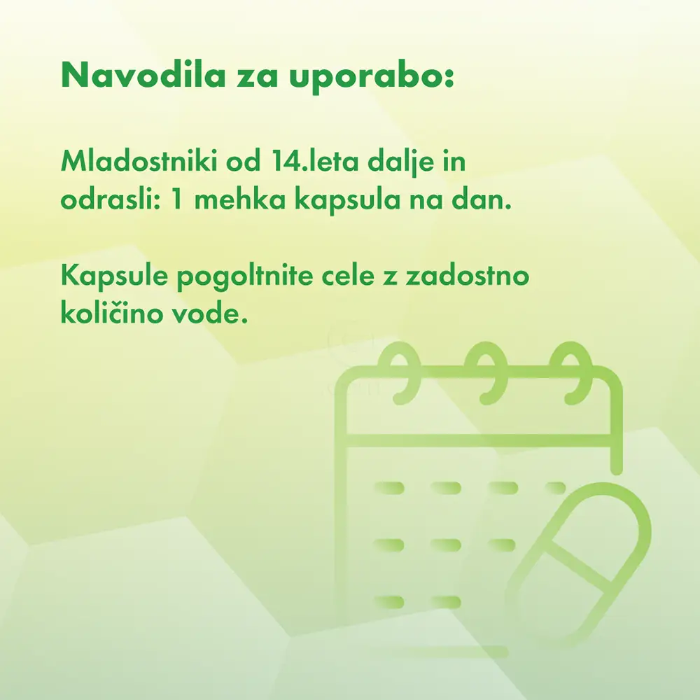 - (mladostniki od 14. leta dalje in odrasli): 1 kapsula na dan. Mehko kapsulo pogoltnite v celoti z zadostno količino vode po obroku.