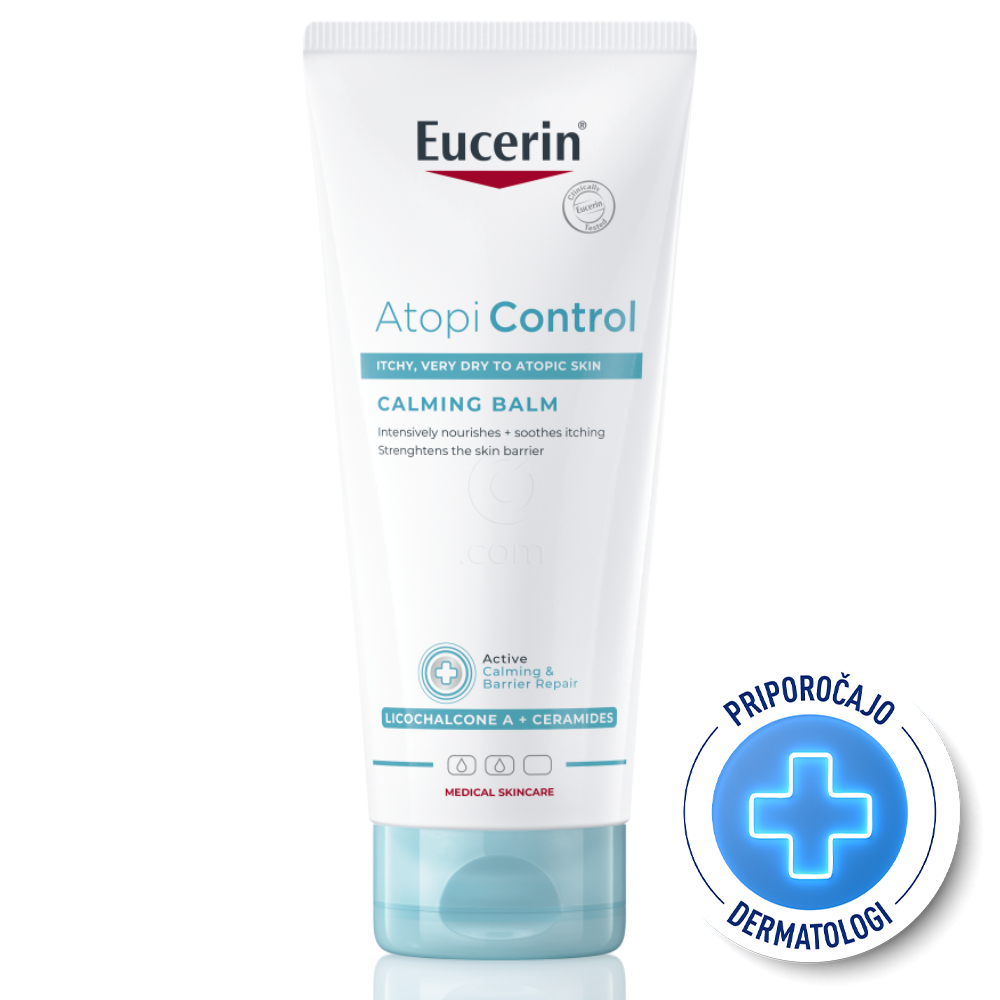 Eucerin AtopiControl balzam je balzam za telo za vsakodnevno uporabo, ki je bil posebej razvit, da pomiri in intenzivno navlaži razdraženo in srbečo kožo. Lahek in negovalen balzam, ki je po sestavi olje v vodi, je obogaten s pomirjajočim licochalconom A, ceramidi in karitejevim maslom, da okrepi bariero kože, zmanjša suhost in ublaži srbečico.