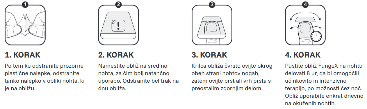 - Obliž proti glivicam na nohtih FungeX je namenjen samo za odrasle.