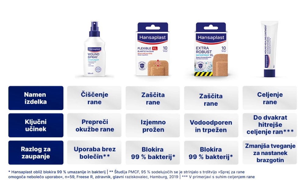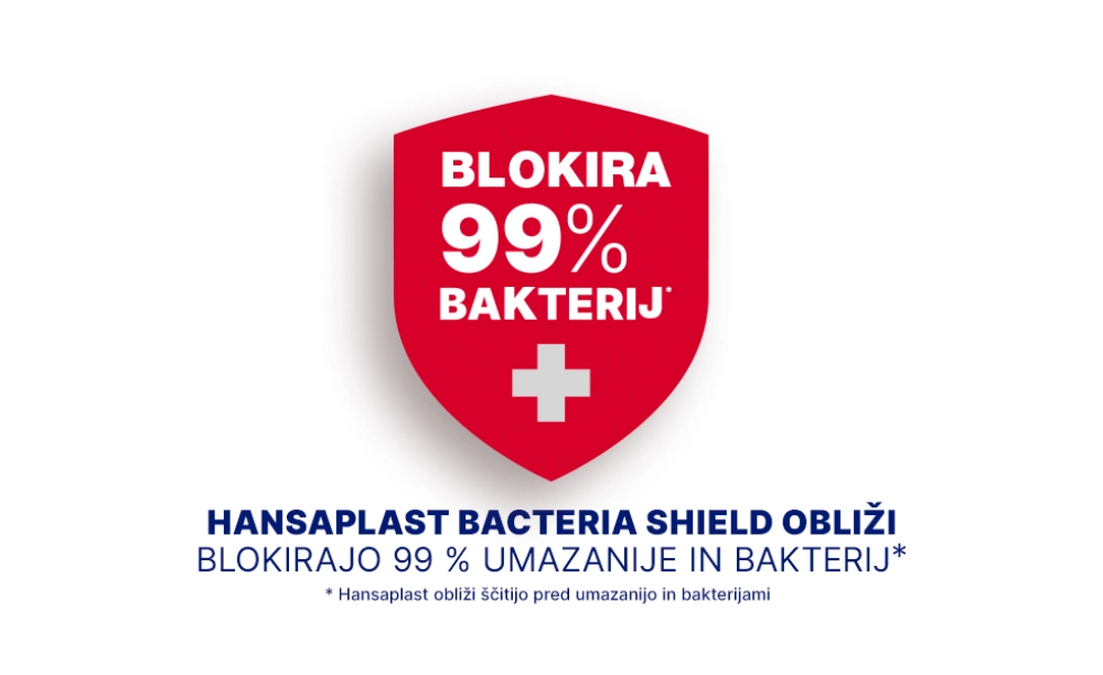 Očistite rano, npr. s Hansaplast sprejem za rane, in jo nežno popivnajte. Namestite obliž, ne da bi ga raztegnili.