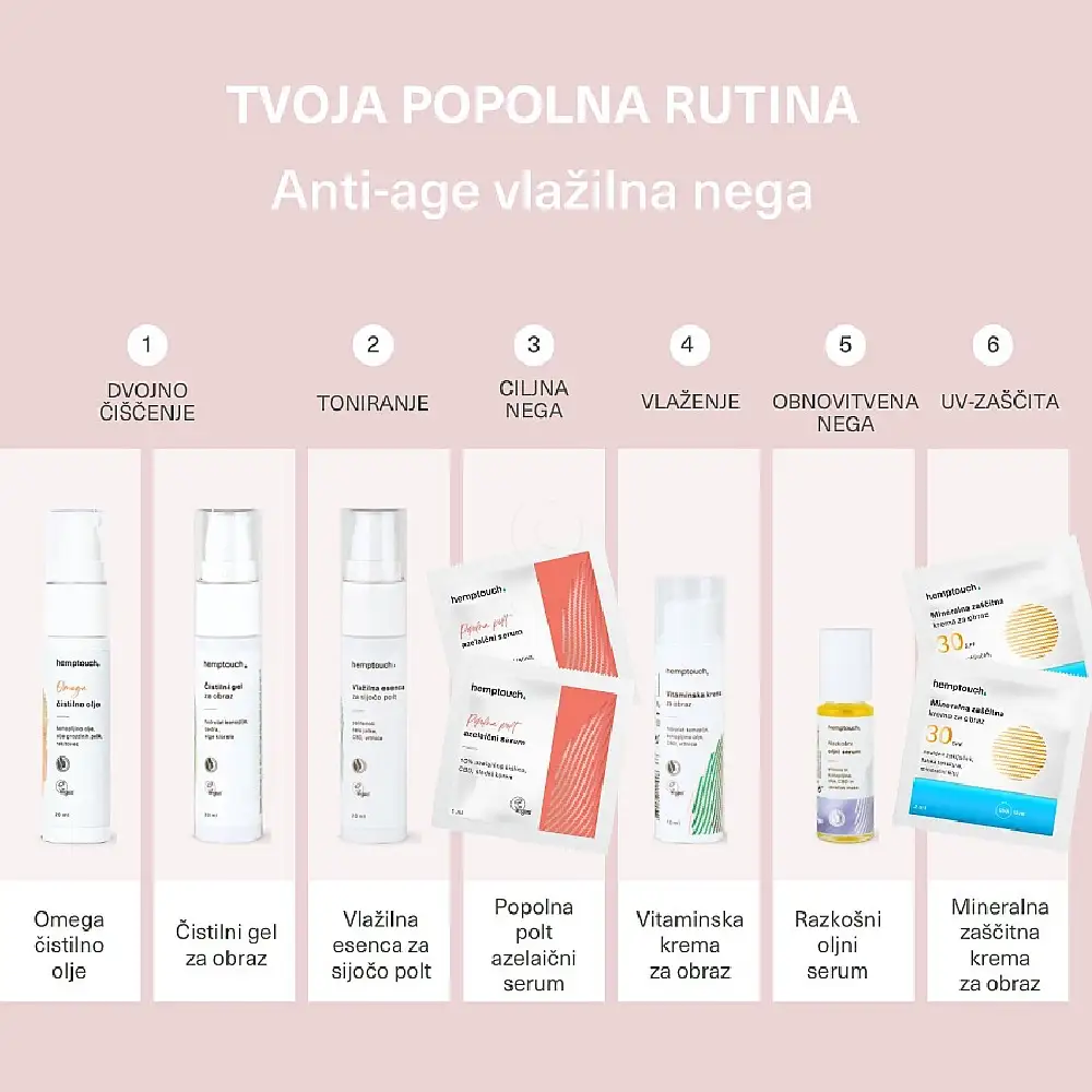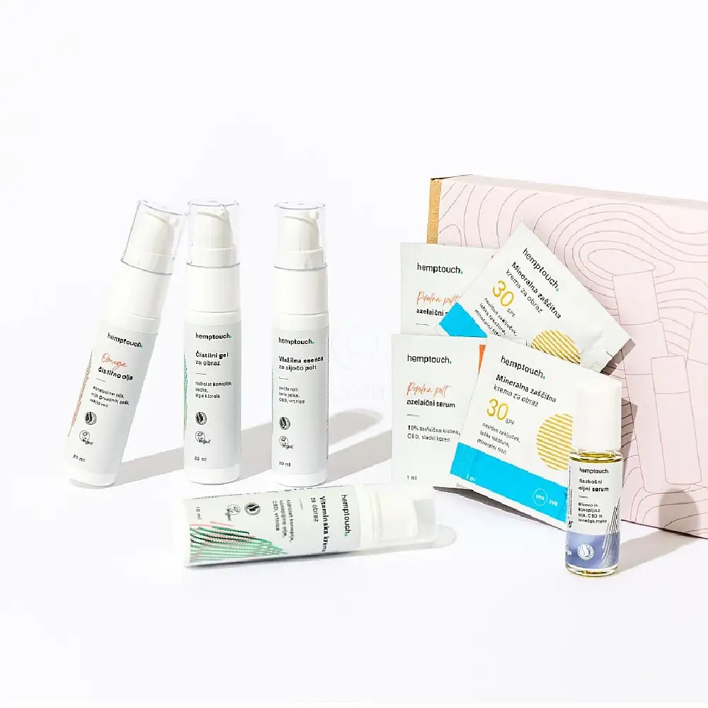 Hemptouch Raziskovalni set, anti-age vlažilna nega (3 x 20 ml + 10 ml + 5 ml + 2 x 2 ml + 2 x 1 ml)