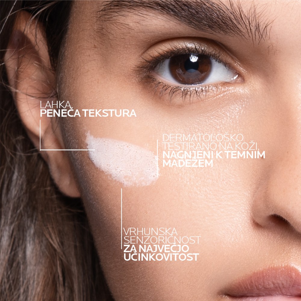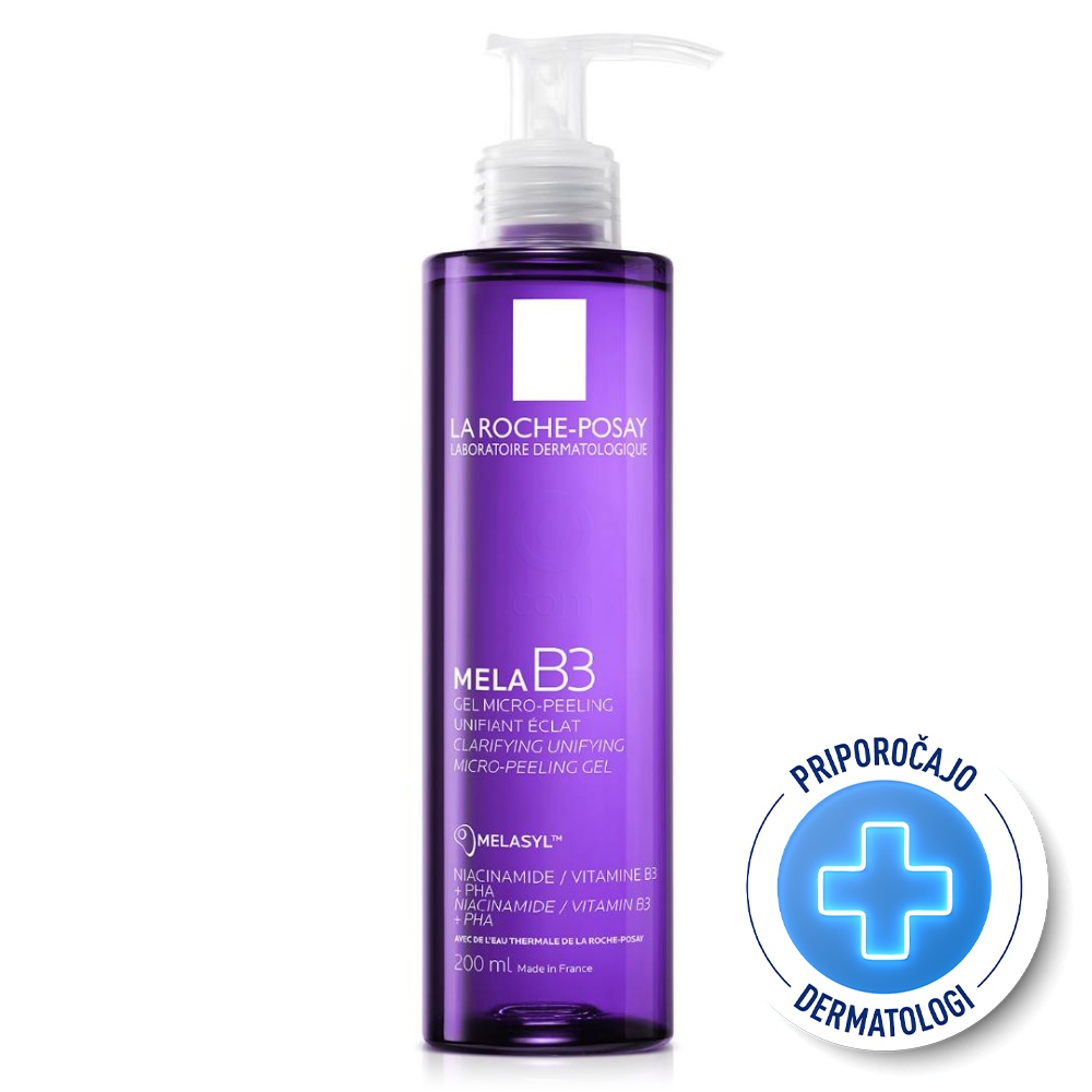 LRP Mela B3 mikro piling gel proti temnim lisam formuliran z Melasylom, PHA kislino in 10% niacinamida, nežno očisti kožo in vidno zgladi teksturo kože.