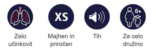 Za lajšanje bolezni dihal, pri katerih je med terapijo treba uporabljati fiziološko raztopino ali zdravilo, ki ga je predpisal zdravnik, v obliki aerosola.