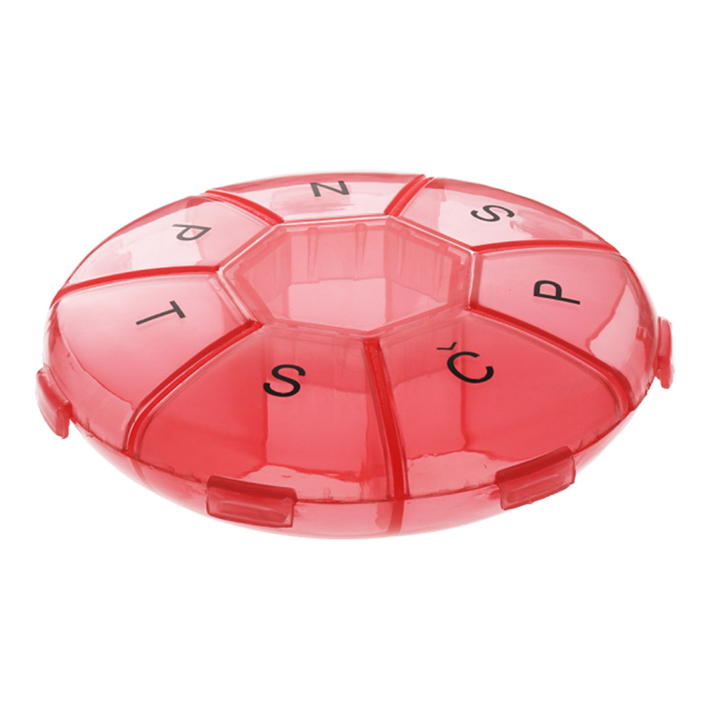 - Edinstvena okrogla oblika posodice omogoča priročno in varno shranjevanje tablet za vsak dan v tednu