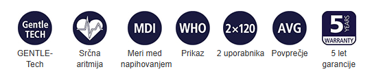 | Osnovne značilnosti | merjenje sistoličnega, diastoličnega tlaka in srčnega utripa (pri vseh enako besedilo) |