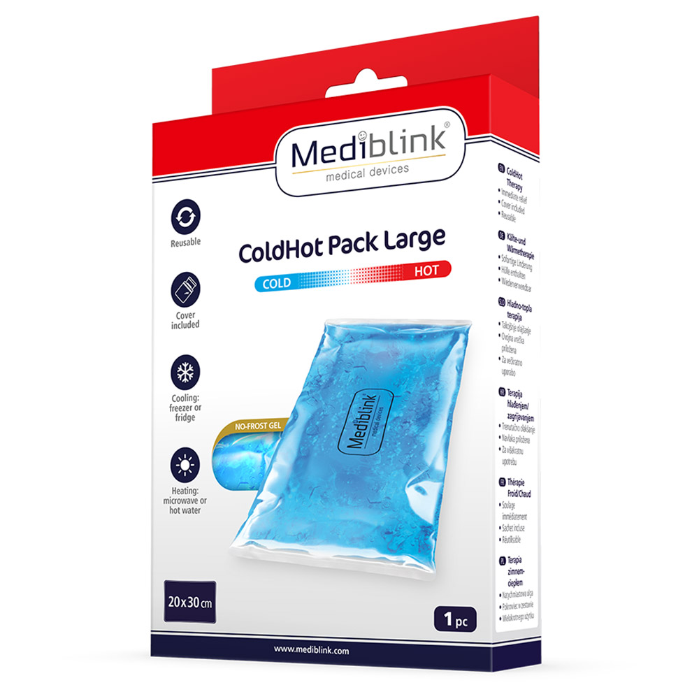Mediblink Hladilno-toplotna blazinica M129 se uporablja za zagotavljanje hladno-tople terapije za različne prizadete predele. Nudi takojšnje olajšanje v primeru bolečih mišic, zvinov, artritisa, oteklin ali pikov insektov. Ohlajena ali segreta ohrani temperaturo vsaj 20 minut. Hladi se v zamrzovalniku ali hladilniku. Greje se v mikrovalovni pečici ali v vroči vodi. Upogibljiva je tudi, ko jo vzamete iz zamrzovalnika, zato omogoča takojšnjo uporabo.