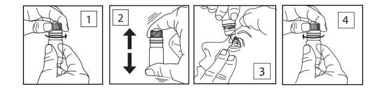 - Če ni drugače priporočeno, nanesite 1 kapljico ali 2 kapljici tako pogosto, kot je potrebno. S kazalcem nežno potegnite spodnjo veko navzdol, medtem ko gledate navzgor, stisnite vsebnik in vkapnite kapljice v oko. S konico vsebnika se ne dotikajte oči ali vek. Po vkapanju, bo spontano mežikanje emulzijo enakomerno porazdelilo po površini očesa in ustvarilo prozoren, obstojen film.