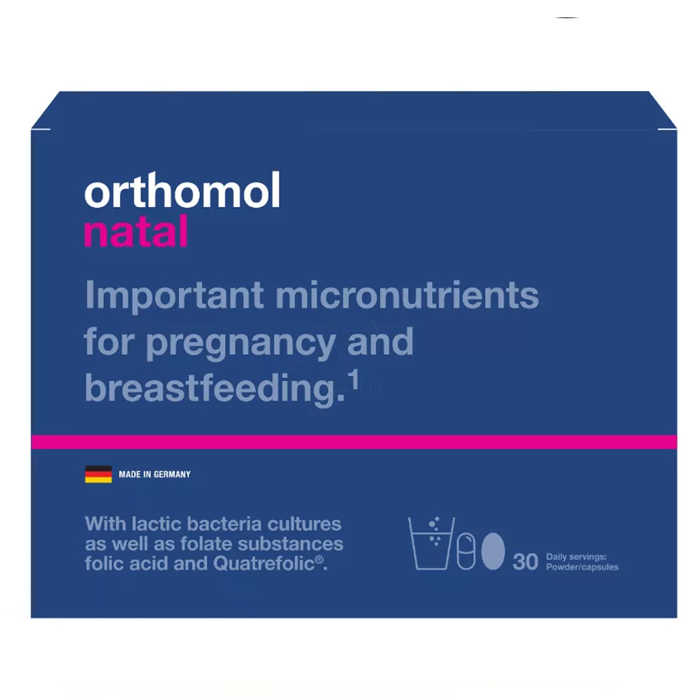 Orthomol Natal je prehransko dopolnilo za nosečnost in dojenje. Z bakterijskimi kulturami mlečne kisline ter folatnimi snovmi, kot sta folna kislina in kvatrefolat. Vsebuje omega-3 maščobne kisline, vitamin B6, vitamin B12, vitamin C, vitamin D, vitamin K, folat, holin, kalcij, železo, jod, baker, magnezij, selen in cink ter druge vitamine, minerale in druge snovi.