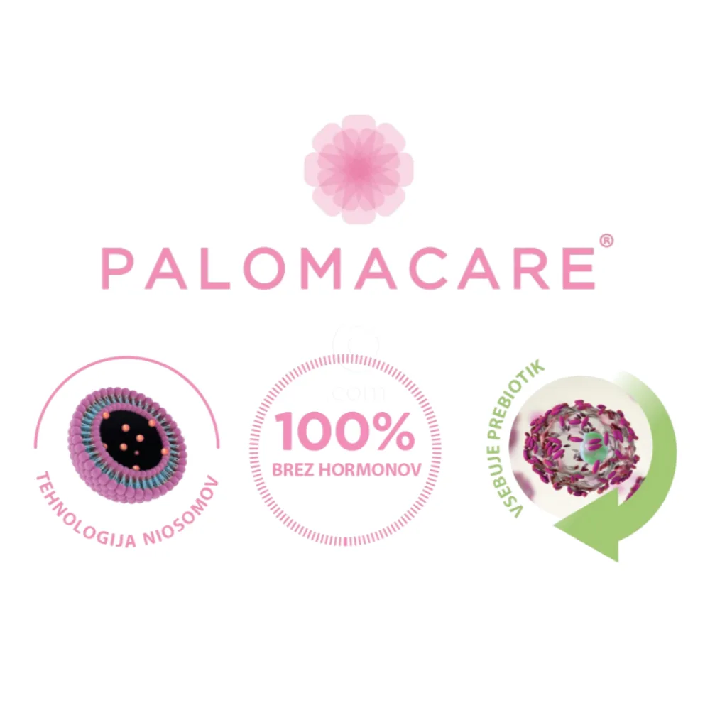 Mehanizem delovanja: Palomacare vaginalni gel je inovativna formula, ki ne vsebuje hormonov. Deluje tako, da na nožnični sluznici tvori film, ki v kombinaciji z različnimi naravnimi sestavinami (v niosomski in fitosomski obliki) vlaži nožnico in izboljša udobje (zmanjšuje občutek "izgubljanja udobja", ki ga pogosto zaznavajo uporabnice).
