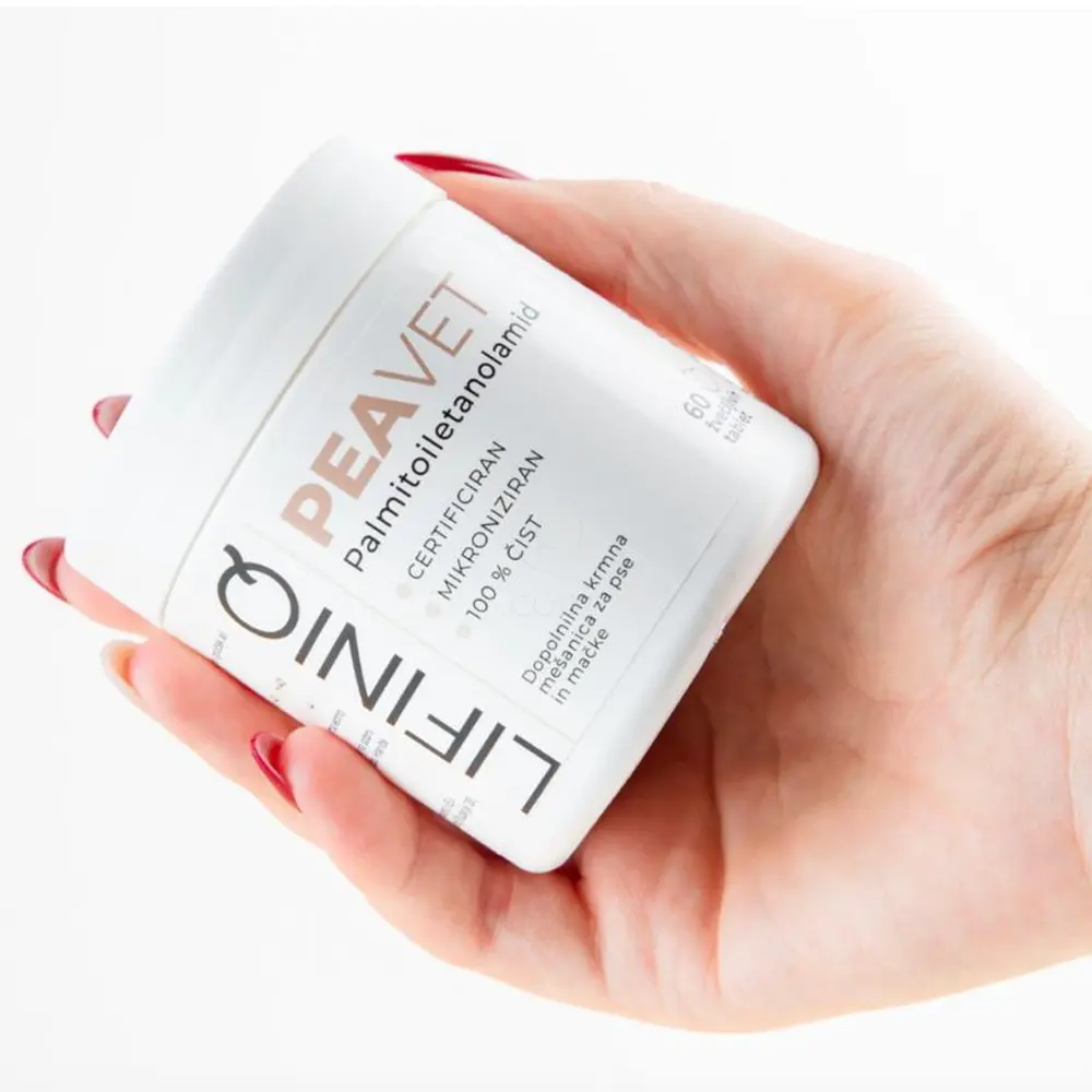 Lifiniq PEAvet je dopolnilna krmna mešanica za pse in mačke s 100 % čistim, certificiranim in mikroniziranim palmitoiletanolamidom (PEA) v obliki mehke žvečljive tablete. Vsaka tableta vsebuje 150 mg mikroniziranega PEA.