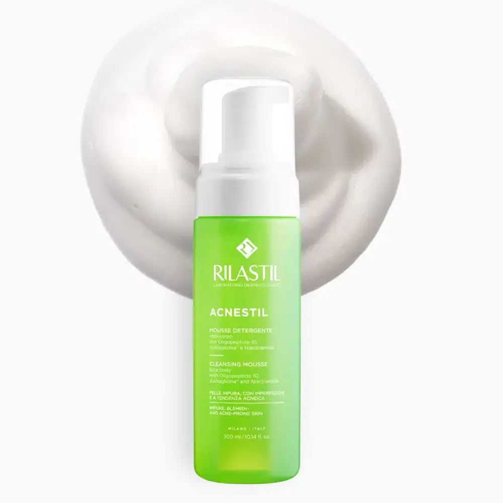 Rilastil Acnestil čistilna pena je namenjena za vsakodnevno čiščenje mešane in mastne kože, ter kože, nagnjene k aknam, z nizko koncentracijo surfaktantov (površinsko aktivnih snovi), obogatena s aktivnimi sestavinami, ki delujejo ugodno na kožo, nagnjeno k aknam in hialuronsko kislino za dodatno vlaženje kože.