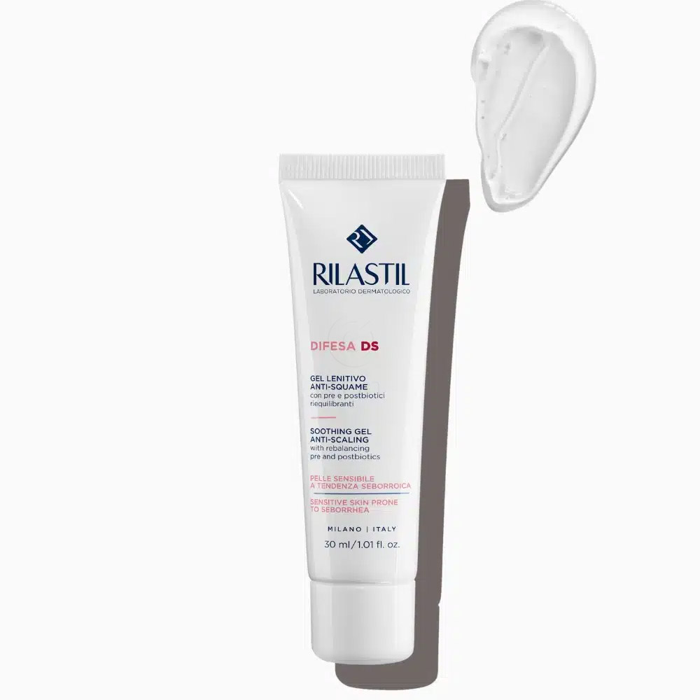 Rilastil Difesa DS pomirjujoč gel je lahek in hitro vpojnen, primeren za občutljivo kožo, nagnjeno k seboreji. Pomaga zmanjšati odvečni sebum, luščenje, srbenje in rdečico na koži in lasišču. Formulacija Rilastil temelji na visoko inovativni PB tehnologiji, ki vključuje prebiotike in postbiotike za ohranjanje ravnovesja mikrobiote kože. Kožo pušča mehko in suho. Oftalmični aplikator omogoča natančno nanašanje na prizadeta območja.