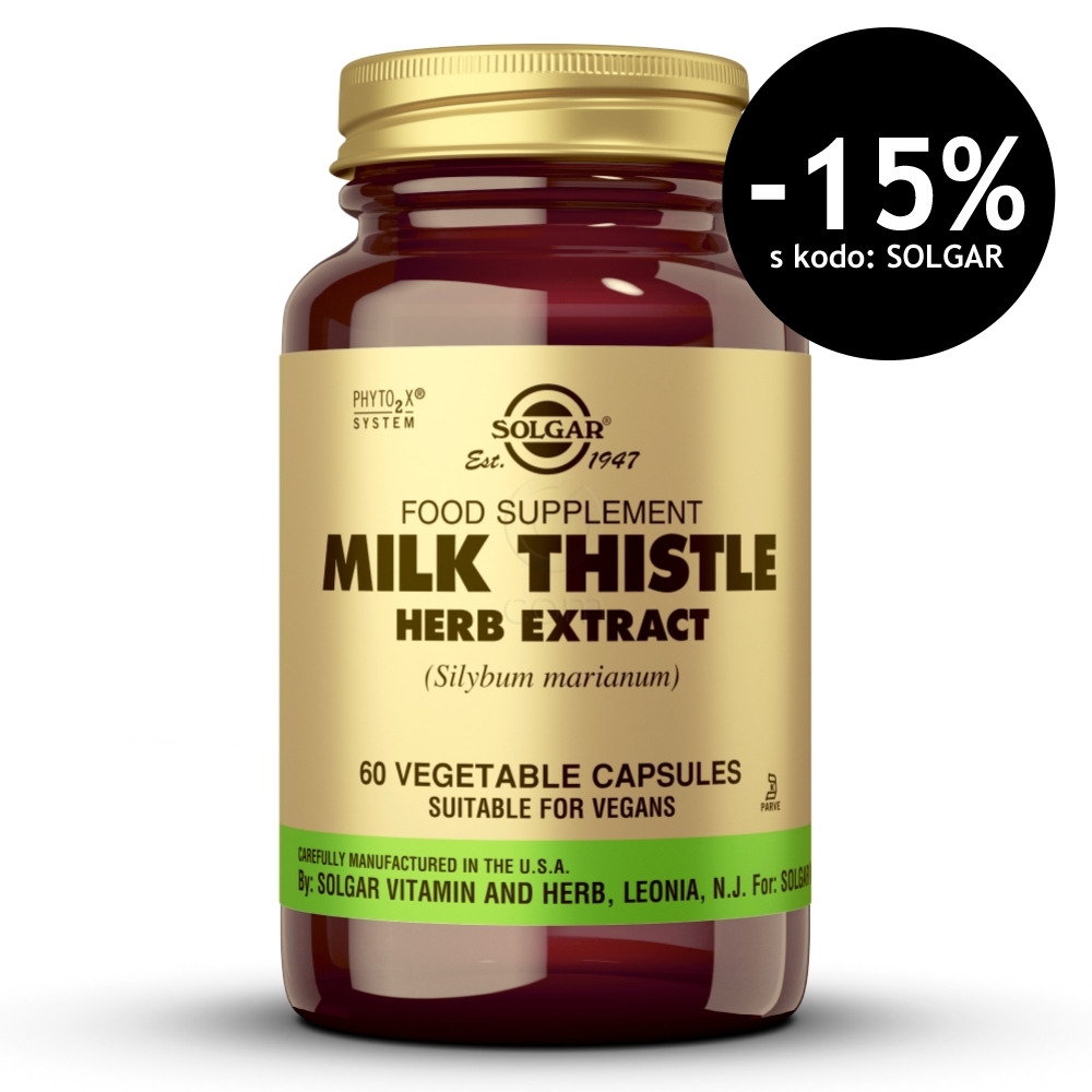 Solgar Pegasti badelj vsebuje rastlinski prah in standardiziran semenski ekstrakt pegastega badlja (Silybum marianum).