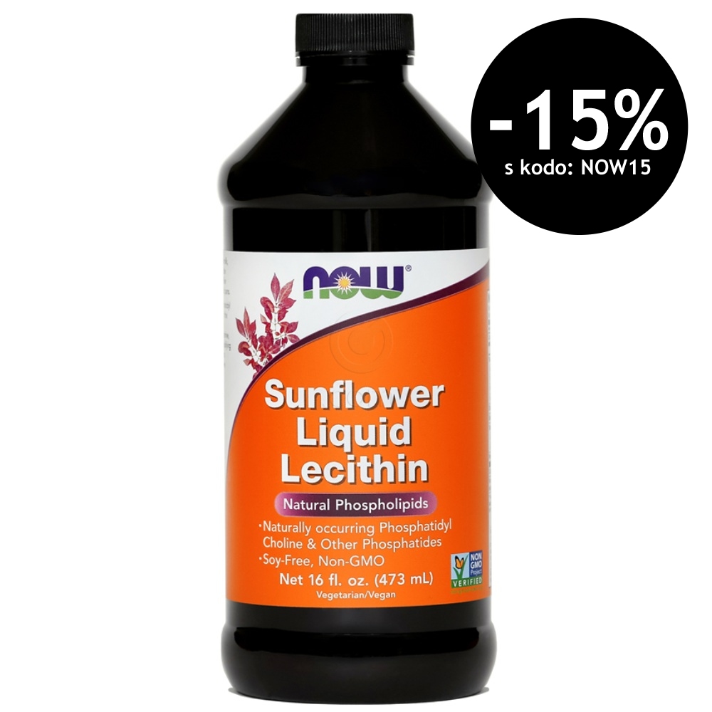 Sončnični Lecitin NOW tekočina vsebuje fosfatidilholin, ki je najbolj zastopan fosfolipid v celični membrani. Prav tako se naravno veže v fosfatidilinozitol, fosfatidiletanolamin in esencialne maščobne kisline.