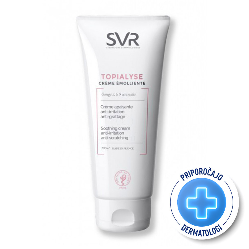 Topialyse emolientna krema, ki nadomešča lipide in obnavlja kožo. Zmanjšuje srbenje in draženje kože, nagnjene k atopijskem dermatitisu. Brez parabenov, fenoksietanola, parfuma in barvil. Hipoalergeni proizvod je testiran na atopični koži.