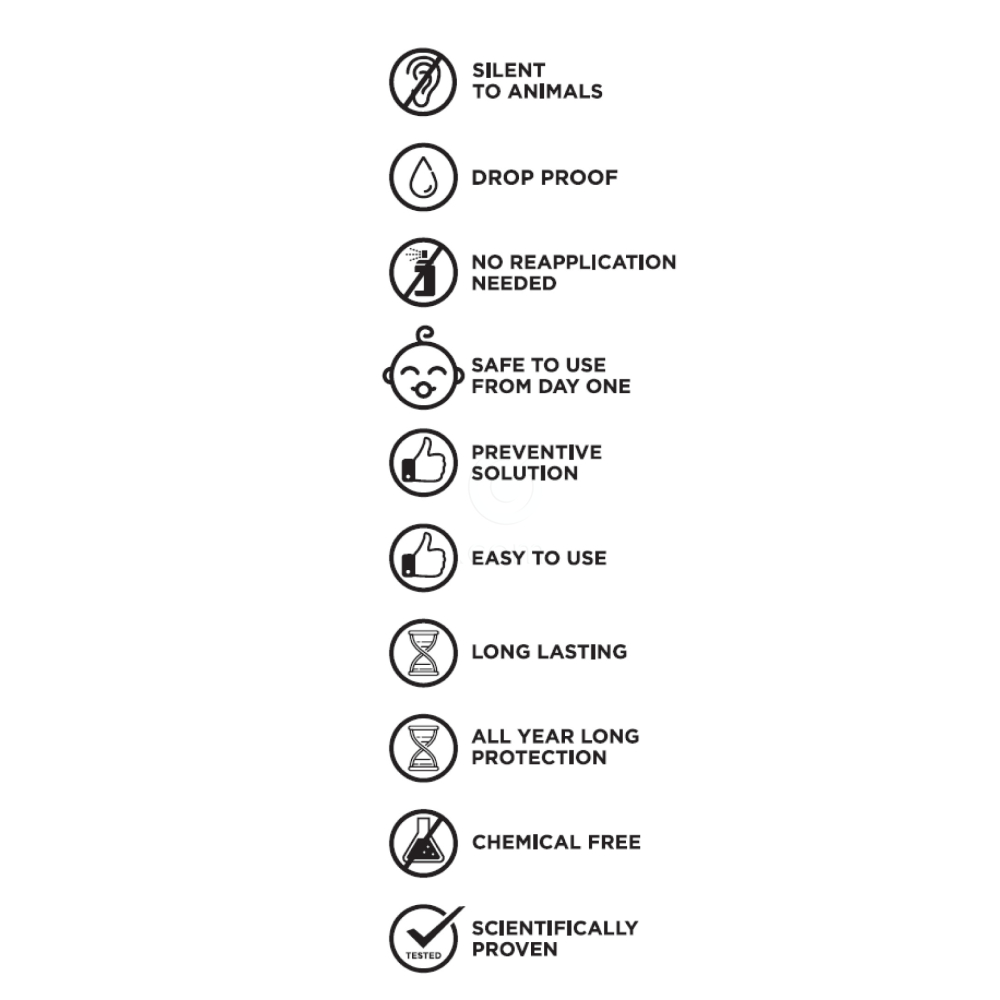 Naprava z oddajanjem ultrazvočnih valov, ki jih ljudje in živali ne zaznamo, vpliva na klope in jih na ta način odganja. Učinkovitost in delovanje je podprto s klinično študijo, narejeno v Laboratoriju za medicinsko mikrobiologijo in infekcijske bolezni na univerzi Camerino v Italiji. Dokazana je bila 94% učinkovitost pri zatiranju infestacije s klopi brez uporabe nevarnih kemikalij!