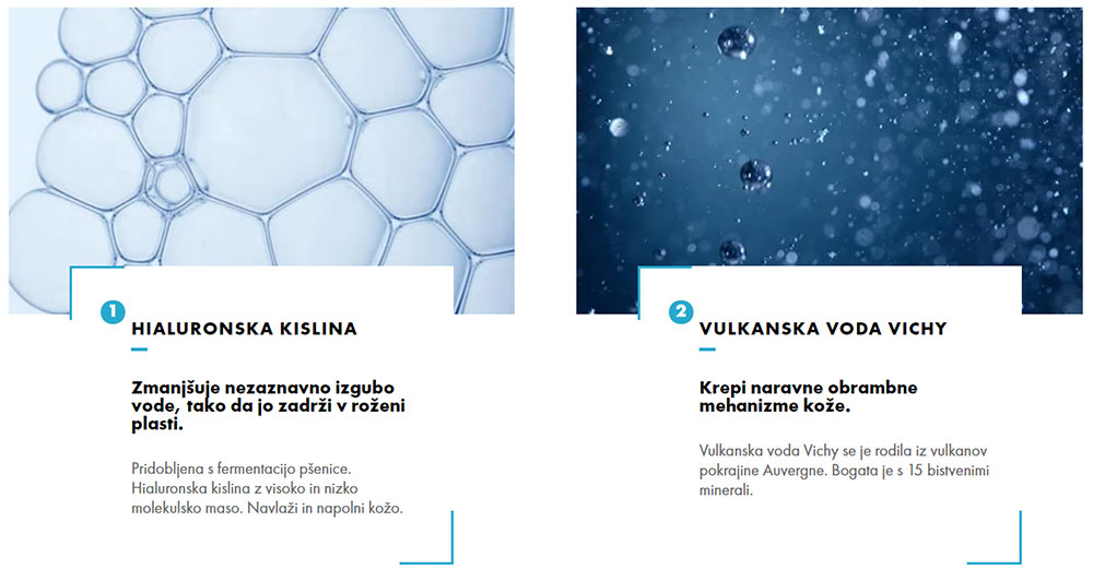 Aktivne sestavine: | Hialuronska kislina, vulkanska voda Vichy |
